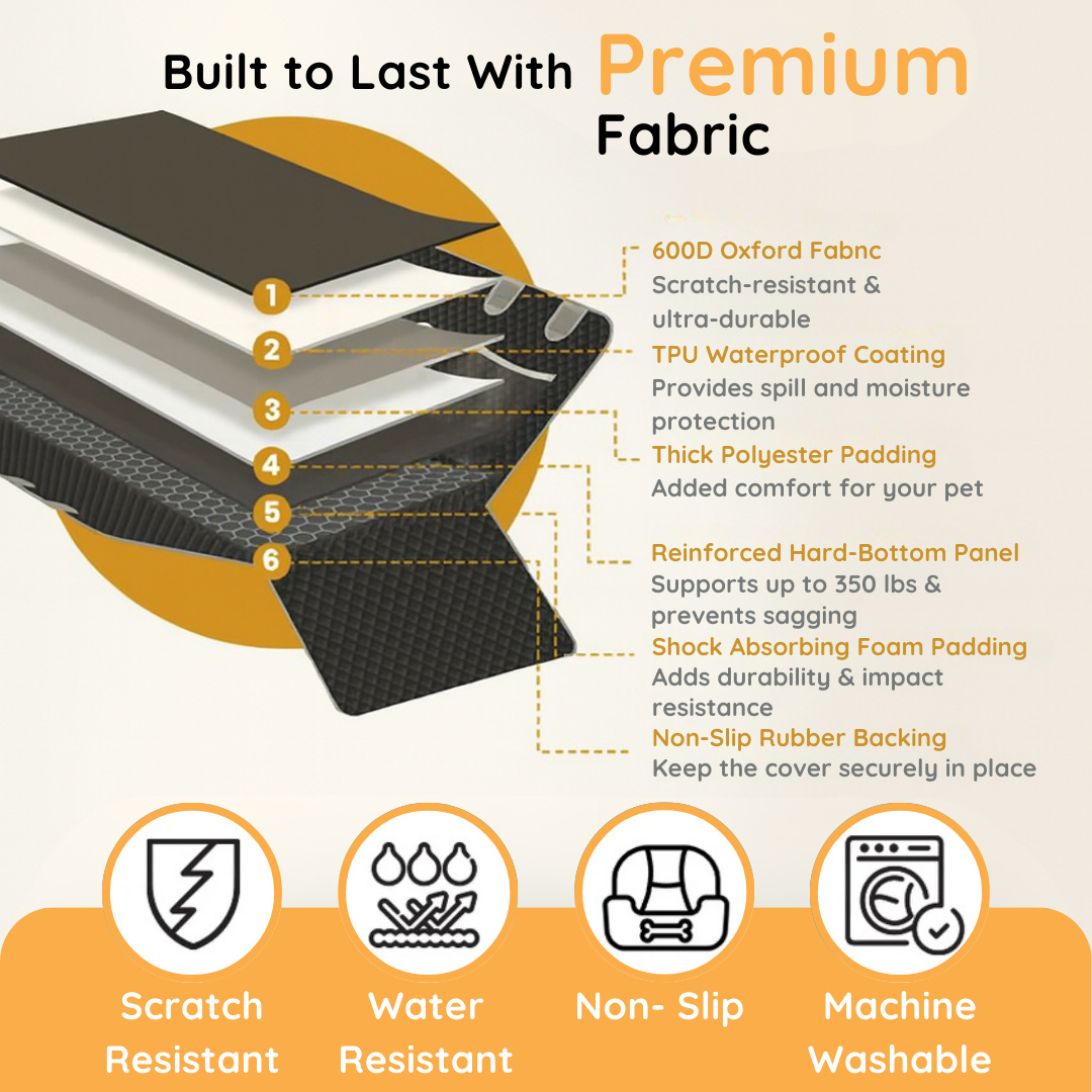 The ComfyPaws™ cover installs quickly and cleans effortlessly—durable, washable, always ready.
